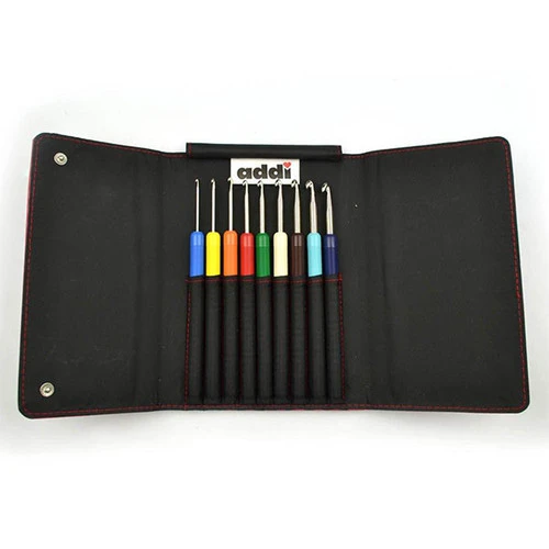 Set of 9 addi color coded crochet hooks.