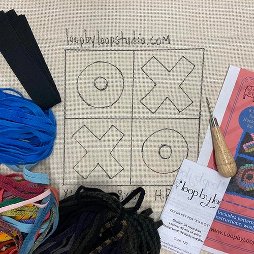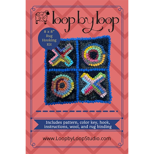 An original design by Hayley Perry at Loop by Loop Studio, this complete beginner rug hooking kit is a great way to get introduced to rug hooking. The kits come with backing, pattern, rug hook, pre-cut wool and cotton binding tape.