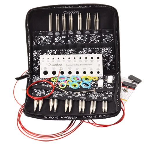 The same stainless steel Red Lace needles and cords that you know and love. The needle tips feature a lifeline hole that makes adding a lifeline as simple as knitting across the row. TWIST red cables are memory free! They consist of a multi-strand, steel cable coated with red nylon. All TWIST (metal) and SPIN (bamboo) set components are interchangeable, including needle tips, cables and accessories, making ChiaoGoo metal interchangeable knitting needles extremely versatile…and cost effective.