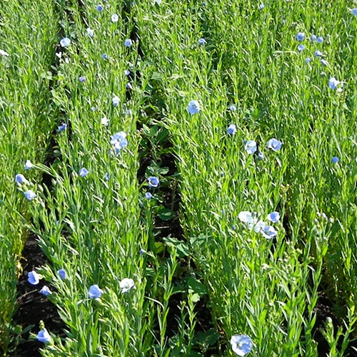 Euroflax is a wet-spun, long line linen yarn made out of flax fiber. It is called “long line” because the plant itself grows more than a yard tall. When it is standing in the field, it is a beautiful sight: bright blue flowers waving in the wind. At harvest time, the flax is cut and laid to dry. The linen fiber is inside the long stems of the flax plant. Euroflax yarn has been used by hand-knitters for more than 20 years in North America.