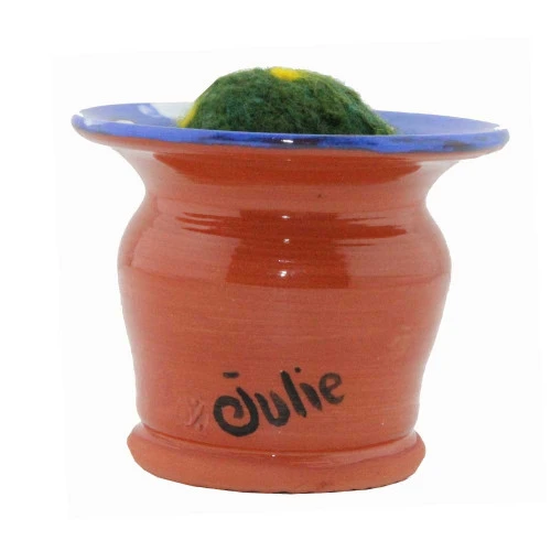These needle holders deliver convenience and beauty. Each one is uniquely designed to accommodate the extra requirements of felting needles. This is not your momma’s “pin cushion”! Hand Painted and Hand Felted in a hand made ceramic container that is just the right depth for felting needles and are decorated with cute sheep grazing in the meadow (needles not included).