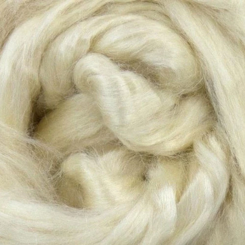 This honey colored fiber is widely regarded as being a little easier to spin than bombyx silk. Cultivated from a different strain of moth than bombyx silk, Tussah silk fiber is incredibly fine, but just a little coarser than bombyx, and feels a bit less slippery. This ivory silk top also dyes beautifully with acid dyes or fiber reactive dyes.