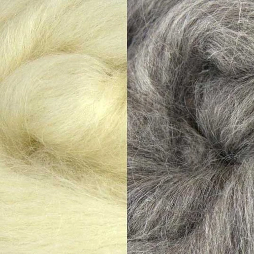 The Masham wool fleece is suited to combing due to its length and is used in speciality products due to its limited availability. This long wool is ideal for hand spinning, hand felting, doll making and many other craft uses. Select either white or grey.