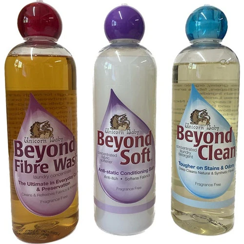 A complete set of the fragrance free Beyond Unicorn line. Permits easy washing and conditioning of raw fleece, fiber and yarns.