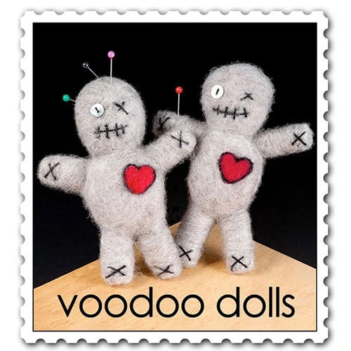 Turn a handful of wool into a pair of Voodoo Dolls. This needle felting kit will make at least two cute voodoo dolls that will do no harm. Makes a great Christmas Tree ornament or a gift for someone special.